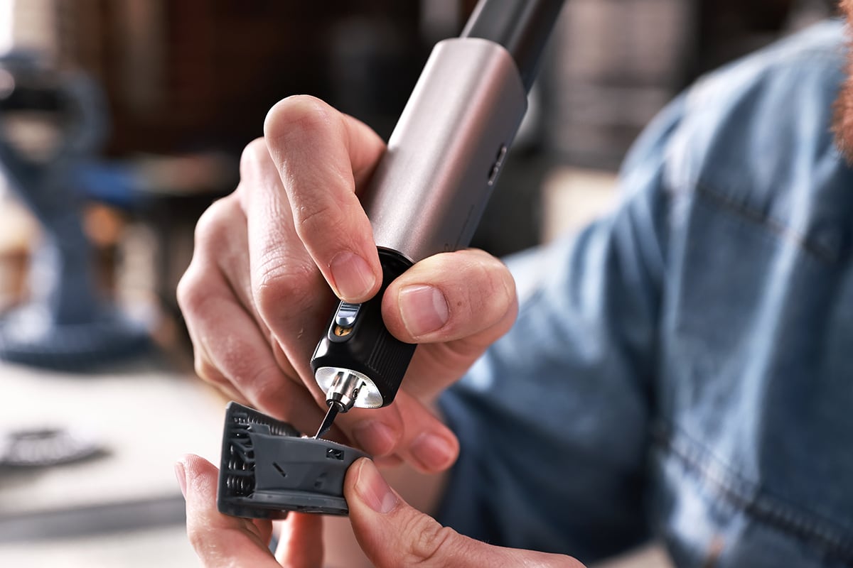 NeoBladeには、交換式バッテリーが2本付属。片方を使いながら、もう一方を充電できるため、作業中に「電池切れで止まる」ことがありません。